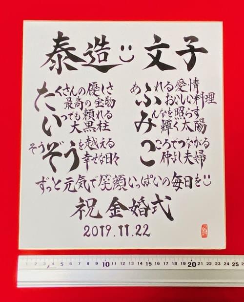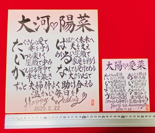 色紙や用紙のサイズ、カラーなどをお伺いし、お客様のご希望を伺った上でお書き致します。